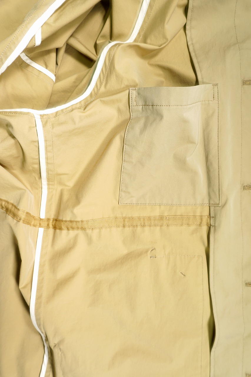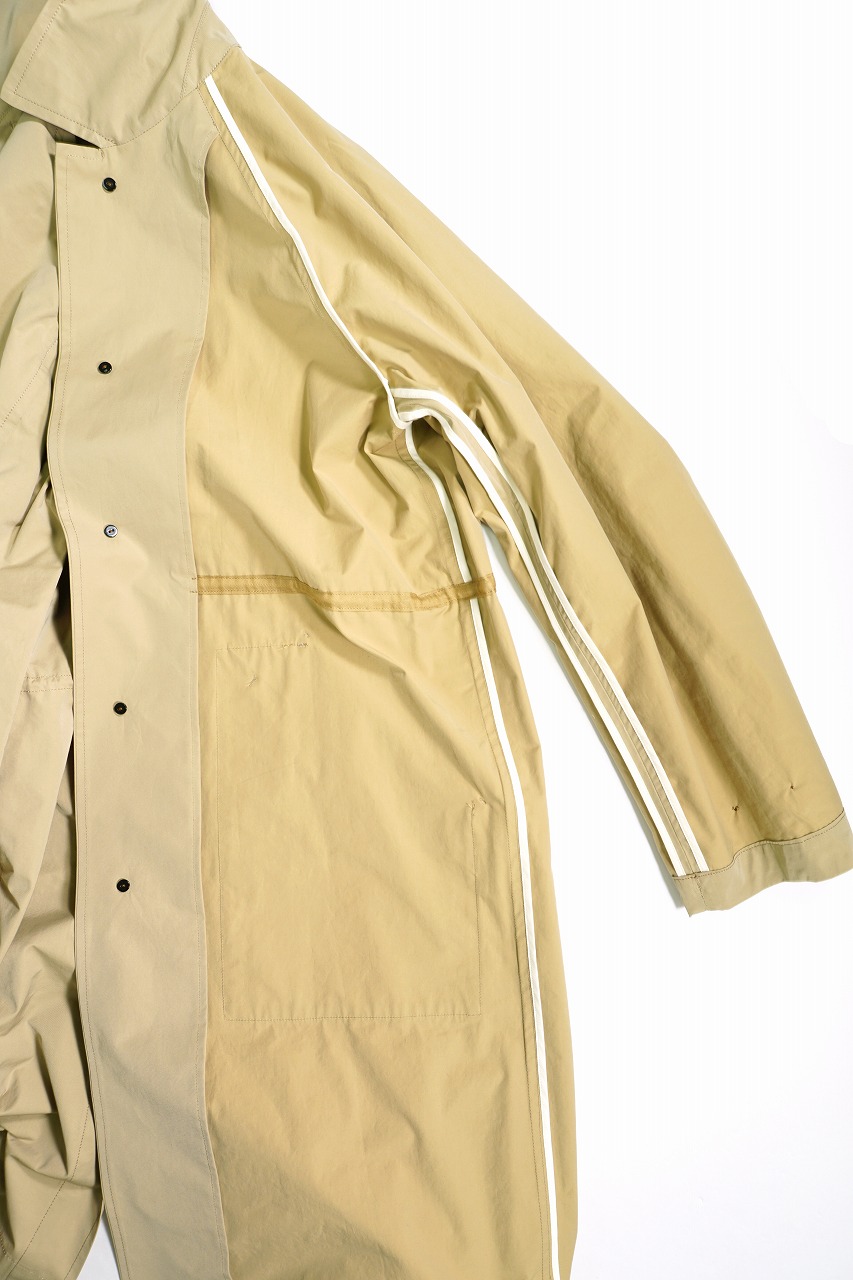 20SSもご好評頂きましたステンカラーコートですが、21SSではもう少し特徴的な要素を加えました。